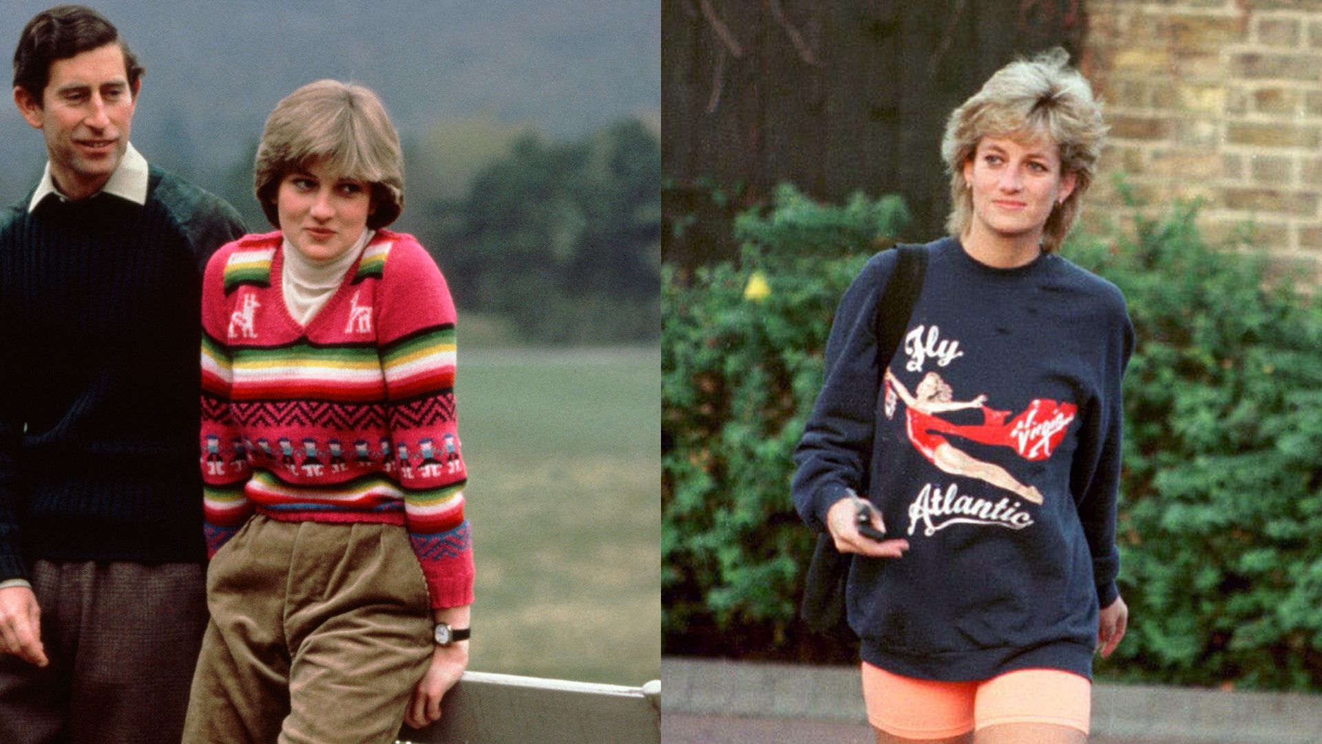 The bike shorts seen 'round the world! You could argue that Princess Diana popularized street style athleisure; Post-separation, there were a few photos taken of her leaving the gym looking happier, casual, and relaxed (and settling into post-royal life). It's tough to beat these peach shorts, Virgin Atlantic graphic sweater, white socks pulled up, white sneakers, and a casual bag. When you think of Diana's casual fashion, this is usually the image that people remember the most.